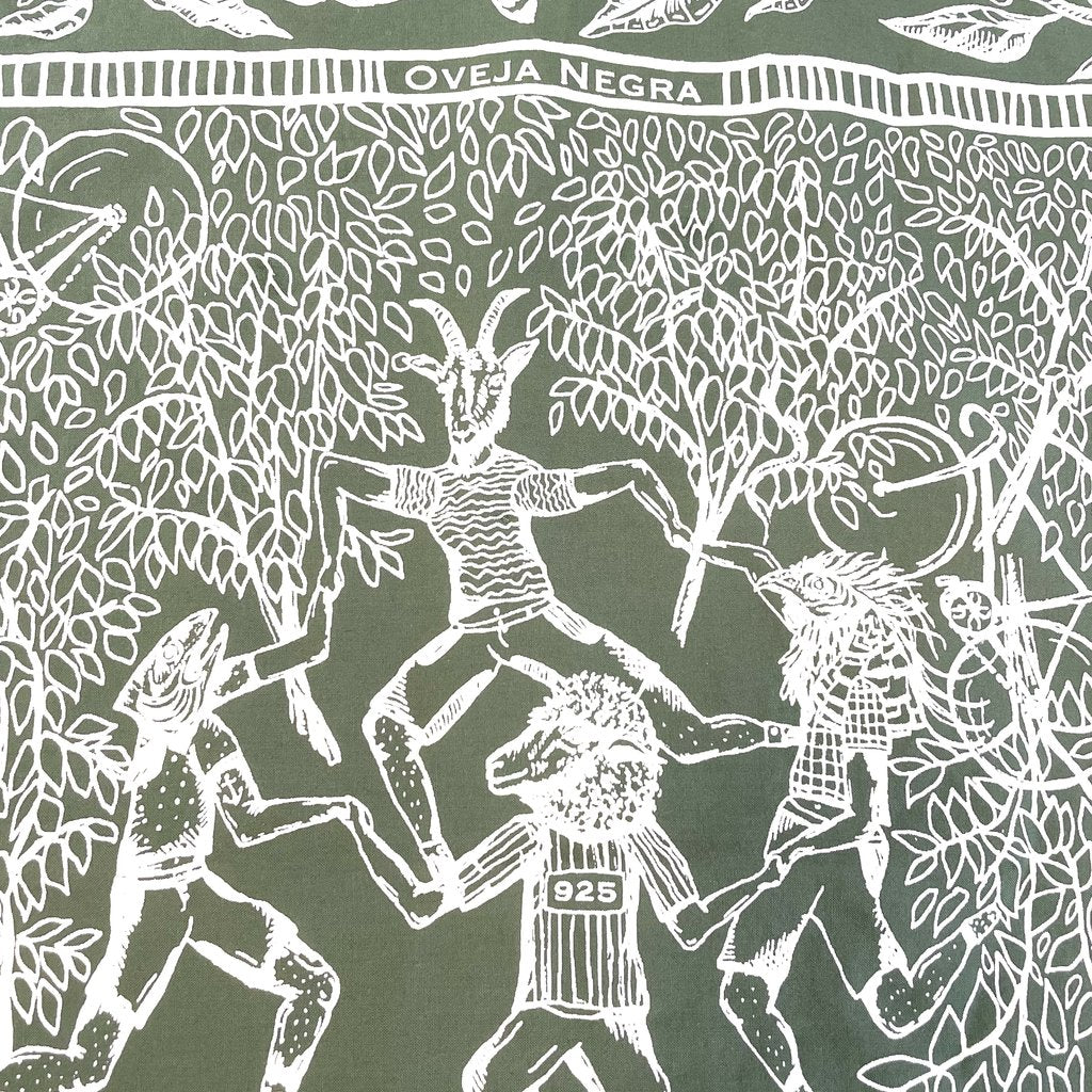 Oveja Negra's ridiculously soft bandanas are washed, cut, sewn, printed, and washed again by their pals at One Feather Press in East Nashville, TN. This vintage style, true discharge ink bandana is 100% colorfast cotton, preshrunk, and ~22" square.