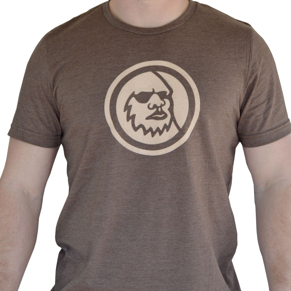 Comfy t-shirts featuring the Widefoot logo printed prominently on the chest. The shirts are screen printed in cream colored ink on super soft, ½ cotton, ½ polyester Bella Canvas tees by our friends at Omaha Screen Co.